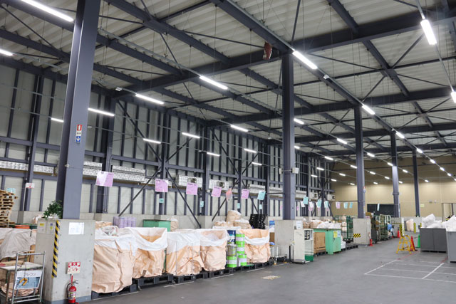 工場では廃棄物をすべて再資源化するシステムを構築。オフィスでは細分化したリサイクルボックスを設け、ひとりひとりに意識の浸透を図っています。